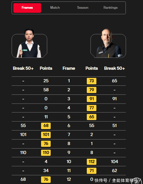 第二小组决赛,威廉姆斯以6-5逆转“囧哥”威尔逊,恐忧晋级四强。半决赛,威廉姆斯又以6-2投诚罗伯逊晋级决赛。冠军战,威廉姆斯一开局5-0跳跃,肖国栋毫可以愕体育录像/图片,连扳四局将比分追成4-5。下半场,威廉姆斯将上风扩大到7-4,第十二局,肖国栋单杆68分追成5-7。