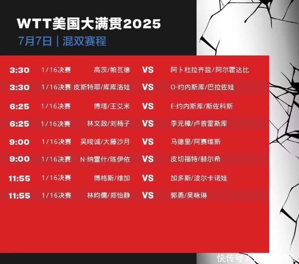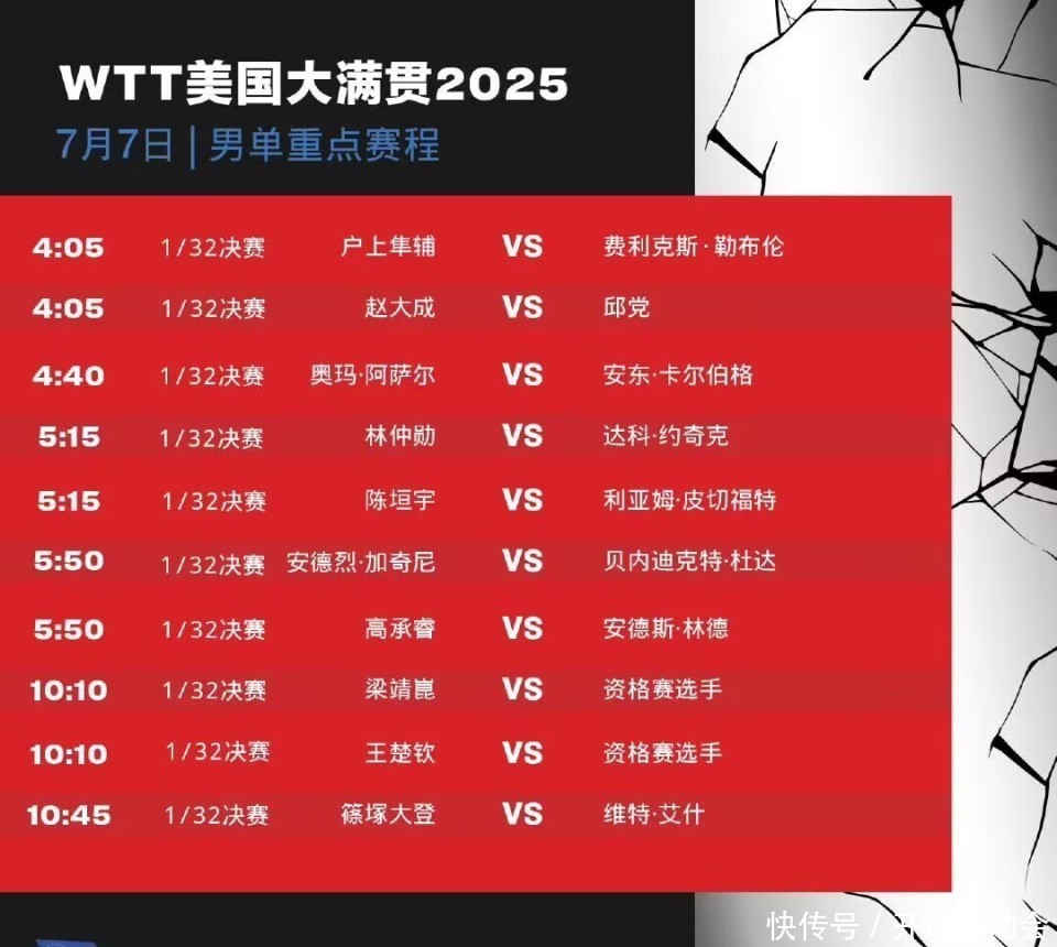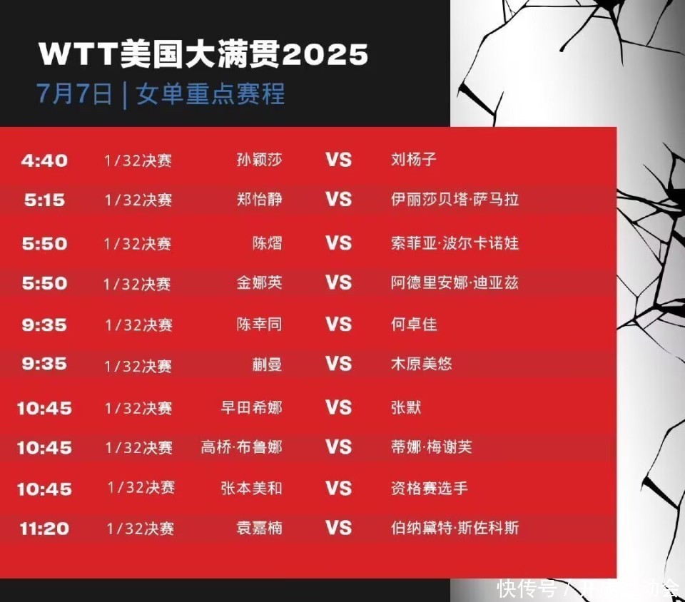 WTT好意思国大满贯国乒正赛首日赛程 也等于7月7日WTT好意思国大满贯国乒的赛事安排!