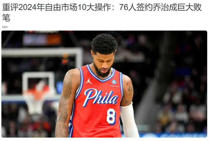 还是来自NBA中国官网音书:重评24年解放签约中,76东说念主签约乔治是刚劲失败。
